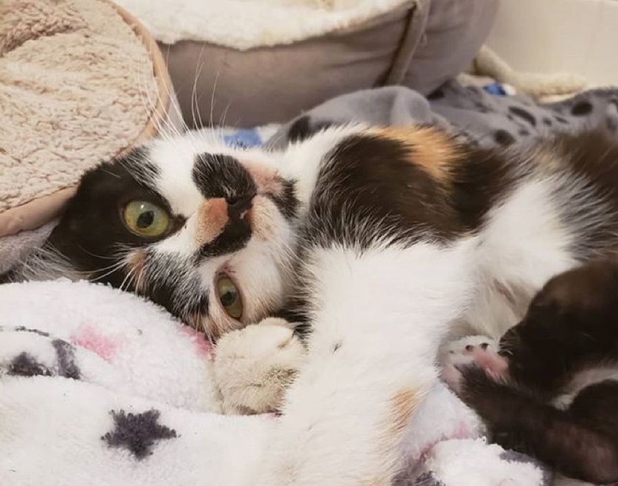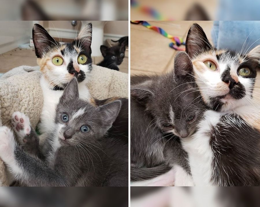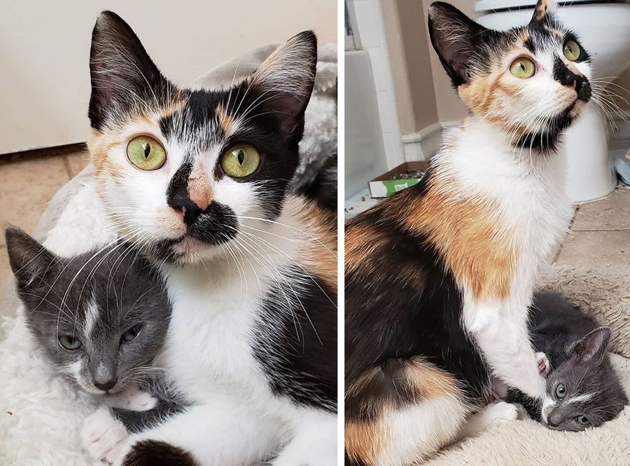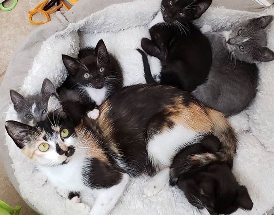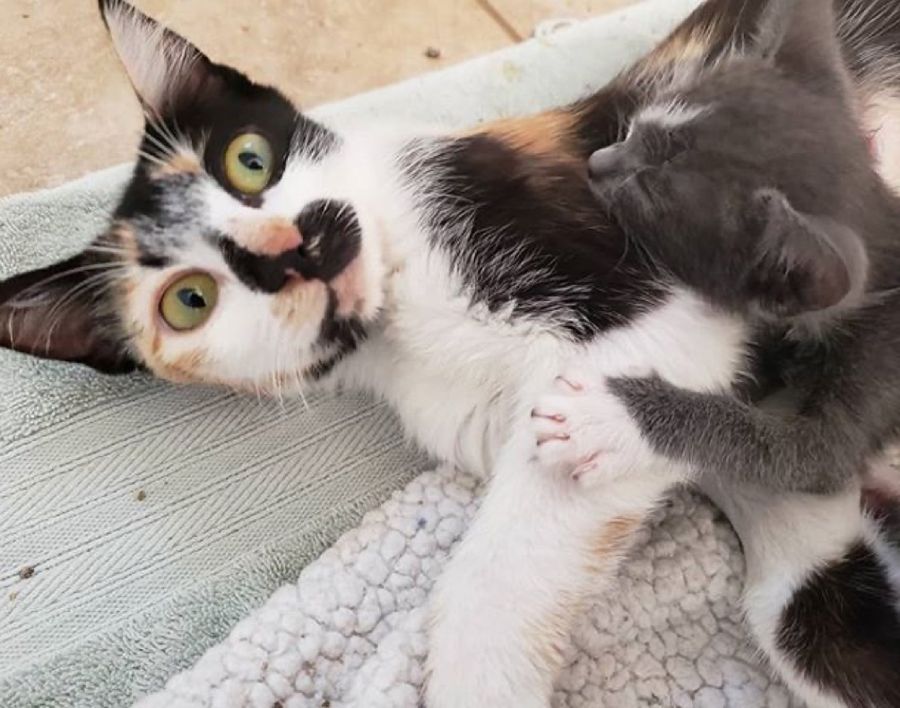 Despite not producing much milk, the sweet calico continued to nurse her feisty little babies and let them cuddle with her day and night, unconditionally. “Mama is just the sweetest thing. She wants love and purrs constantly.”